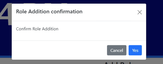 Step 5: Click on the yes button on the confirmation notification to confirm the addition or the cancel button to return to the add role screen.