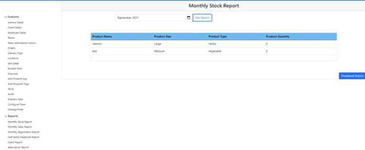 Step 4 : Click on the report download displayed at the bottom of the screen. The monthly stock report pdf will display.